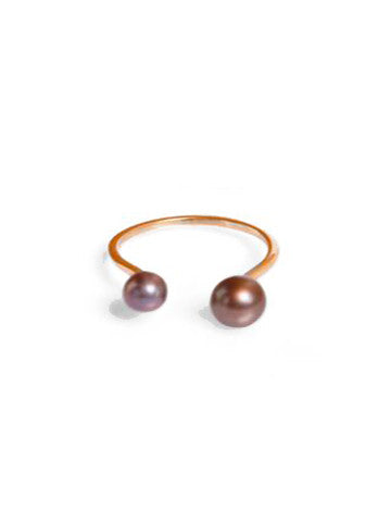 Open Double Pearl Ring - Gold w/ Peacock Pearl