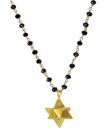 Star Tetrahedron Necklace Beaded Black Onyx Vermeil